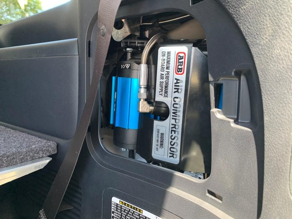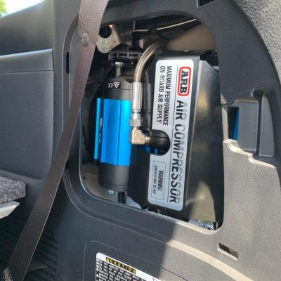 We're big fans of having on-board air compressor systems for controlling airbags at will and inflating tyres, toys, blowing dust out of the garage etc. The go-to compressor is the ARB twin system, or where space is limited the single. Most commonly we're fitting them into the side pocket of an LC200 with our custom piping arrangement. This setup is highly reliable and space efficient. The 300 series offers several new alternate mounting positions (depending on model) that are opening up exciting new possibilities.
